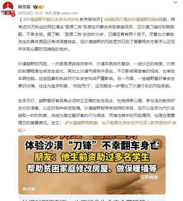据其透露,她的弟弟与好友在8月底把生命留在了乌兰布和沙漠,关于具体的细节,她虽然没有透露,但根据之前媒体透露的消息来分析,她的弟弟就是固原二狗的朋友,不过因为他不是网红,所以身份并没有被披露,但翻看早前透露的消息不难发现,有知情人士表示他姓程。